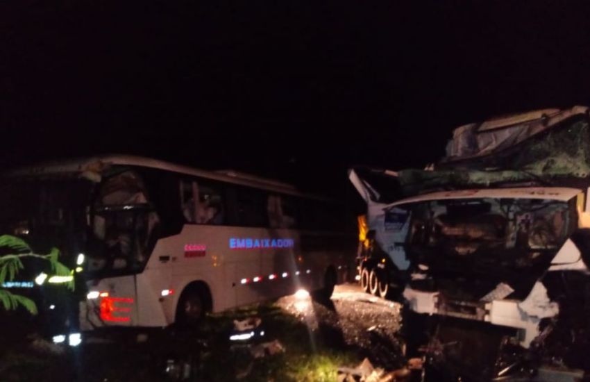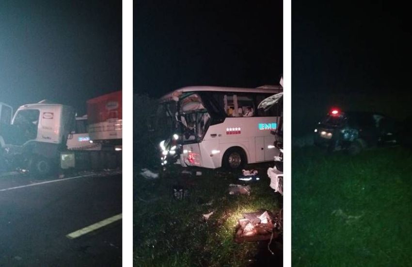 Acidente entre ônibus Expresso Embaixador, caminhão e carro mata motorista na BR 116