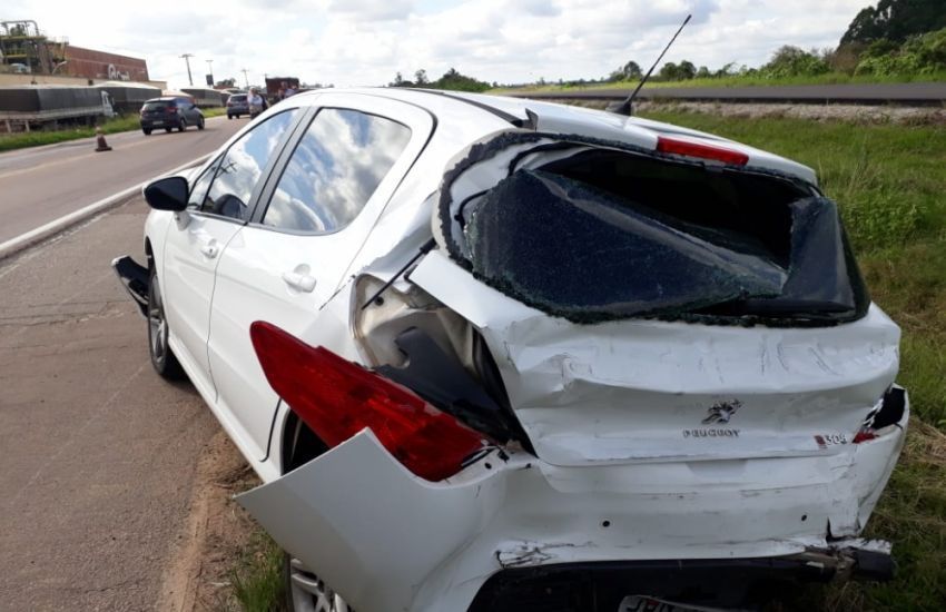Os veículos trafegavam pela rodovia na mesma direção, no sentido interior/Capital, quando a carreta acabou colidindo no Peugeot, que, consequetemente, atingiu a camionete.
